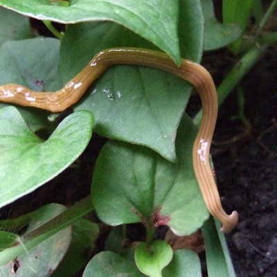 オオミスジコウガイビルってヤツがナッキーの散歩用リードにまとわり付いていた。グニャグニャ。この生き物のことは随分前に書いた気がする。